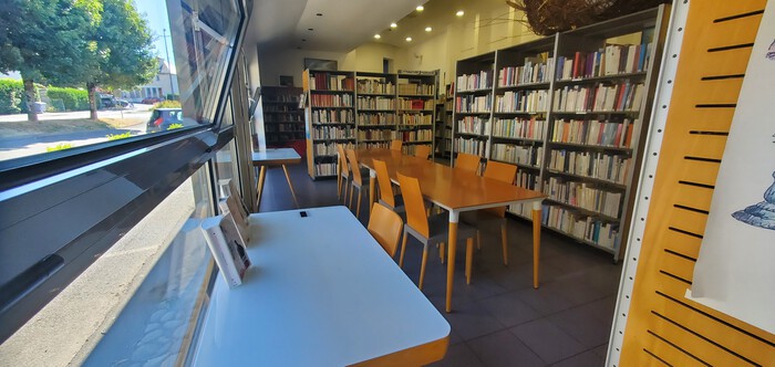 De nombreuses tables sont disposées dans l'espace adulte de la médiathèque pour vous permettre de lire ou de travailler selon vos besoins.